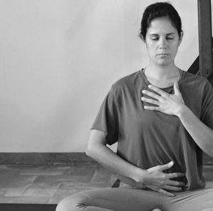 Sit comfortably with your hips on the floor or positioned on a cushion, feeling the support of the earth and how your spine grows tall. Rest one hand in the lap and use the other hand tap or massage the thymus gland (center of the chest) for a couple of minutes using this action to awake your body's energy and bring awareness to the heart space.